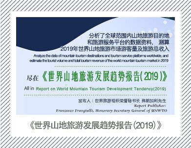 《世界山地旅游发展趋势报告(2019)》是首个关于世界山地旅游发展趋势的全面报告,由国际山地旅游联盟、中法山地旅游发展研究院、携程集团、Tripadvisor猫途鹰共同编撰。报告对山地旅游相关定义、消费群体素描等方面做了详细阐述,综合了全球范围内山地旅游目的地和旅游服务平台的数据资料,通过大量的案例与数据分析,对2019年世界山地旅游市场游客量及旅游总收入进行了测算,为山地旅游未来发展趋势提供指引