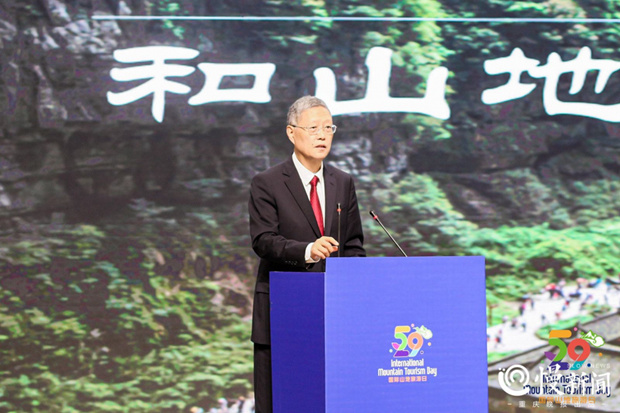 ▲国际山地旅游联盟秘书长何亚非作主旨演讲