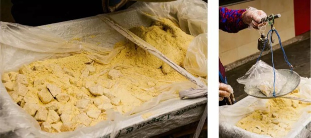 大米和水放入小抽屉一样的模具中烤出脆脆的锅巴,放入豆腐粒、折耳根、酸豆角、豆豉沫、花生米、酸辣椒等配料食用。作为备受铜仁人民喜爱的小吃不管哪家都是大排长龙。
