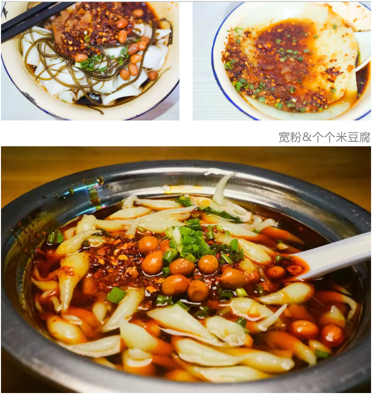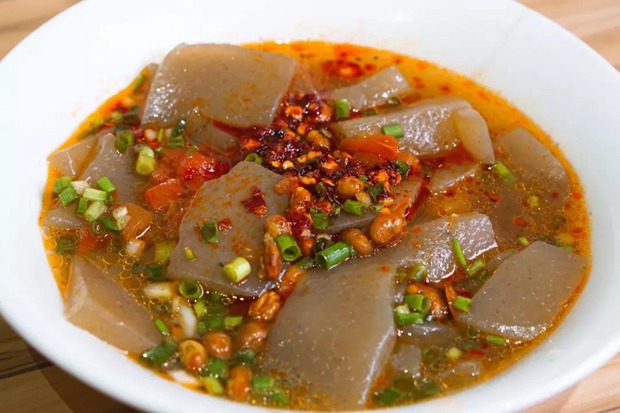 铜仁的凉粉一直都是铜仁人夏天偏爱的小吃,一碗下来饱腹感很强,常常作为主食,其中米虾可以算米豆腐衍生品种之一,因外形似河虾而得名。一碗优秀的米虾需要红油辣椒、葱姜水、蒜末、酱油、醋、炸花生米、榨菜碎搭配,口感酸辣爽滑,就是地道的铜仁味道了。
