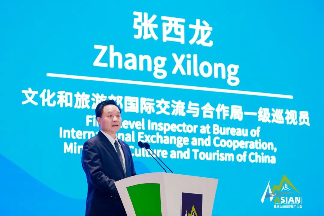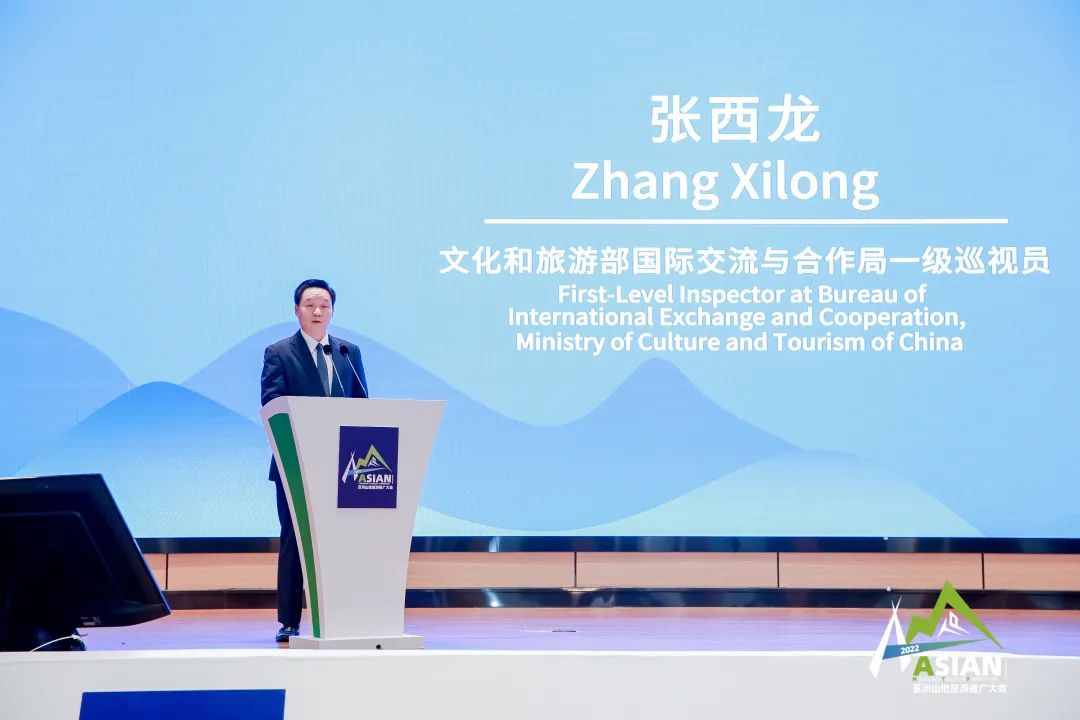 文化和旅游部国际交流与合作局一级巡视员张西龙出席并发表致辞。他指出,2022年是“国际山地可持续发展年”,此次亚洲山地旅游推广大会以“亲诚惠容 合作共享—携手共筑亚洲山地旅游发展新未来”为主题,是落实中国国家主席习近平提出的“绿水青山就是金山银山”理念和“全球发展倡议”的积极实践,也是贯彻中央乡村振兴战略和旅游可持续发展的具体举措。相信本次大会将为亚洲国家共同打造山地旅游品牌、促进山地旅游交流搭建合作平台,将为造福山地民众、促进乡村振兴、共筑可持续山地旅游发展新未来贡献力量。