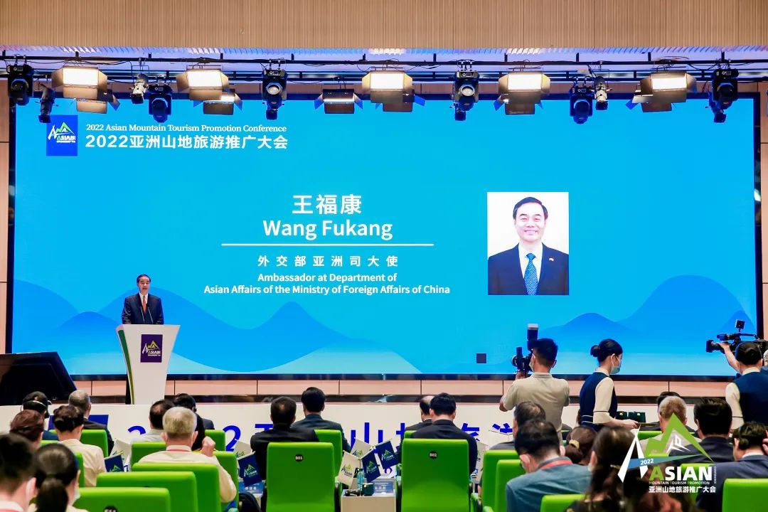 中华人民共和国外交部亚洲司大使王福康出席并发表致辞。他表示,亚洲各国山水相连、人文互亲、经济共融,周边始终是我国安身立命之所、发展繁荣之基。中国与亚洲其他国家和地区互为最重要的客源地和目的地,亚洲拥有全球最为丰富的山地资源,具有独特的山地景观和丰富的文化资源,山地旅游在亚洲地区文化旅游合作中占重要地位,有着巨大的潜力和广阔的前景,可以成为亚洲旅游复兴的创新引擎。