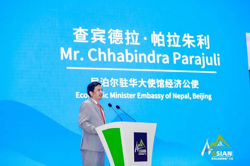 8月18日,以“亲诚惠容 合作共享——携手共筑亚洲山地旅游发展新未来”为主题的2022亚洲山地旅游推广大会在贵州省贵阳市启幕。在2022亚洲山地旅游推介会环节,尼泊尔驻华大使馆经济公使查宾德拉·帕拉朱利向大家介绍了尼泊尔丰富的高山资源。