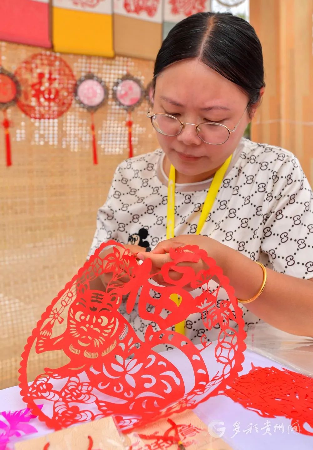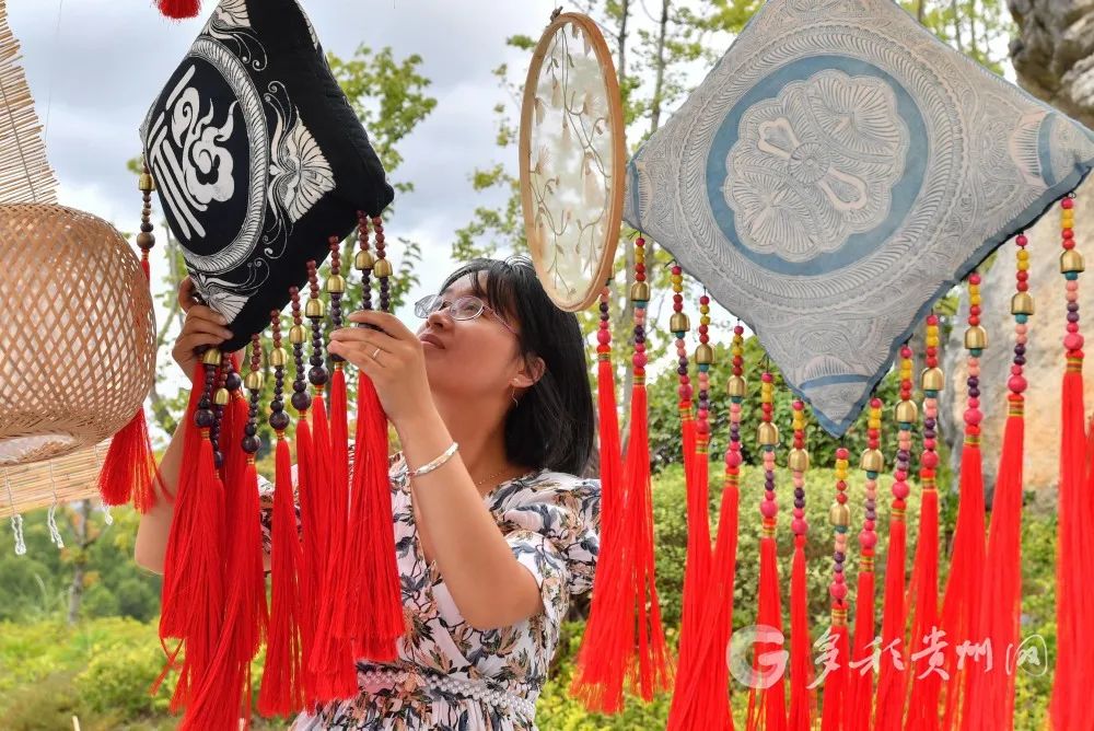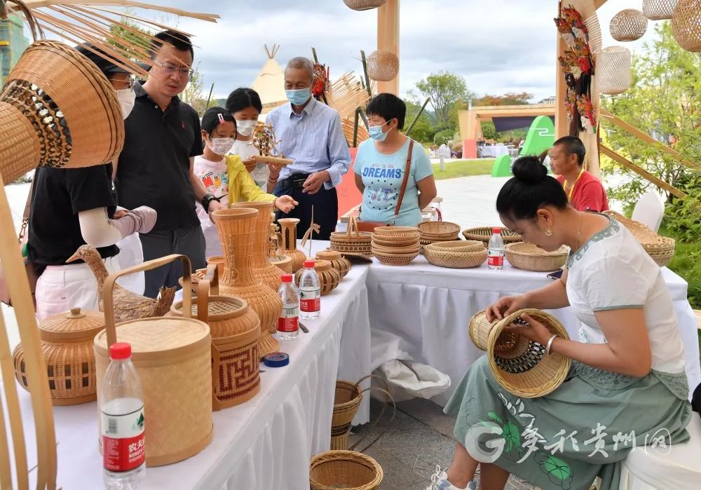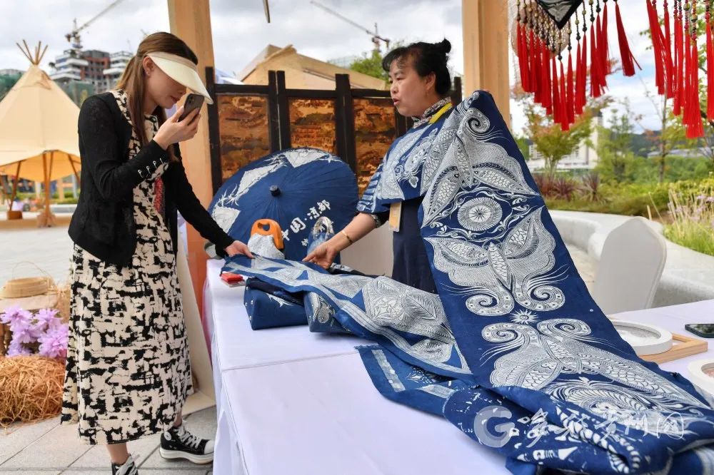 2022年8月21日,在贵州省贵阳市国际山地旅游联盟总部,2022亚洲山地旅游推广大会的配套展区中,山地生活消费和非遗传承展受到不少游客的关注。在贵州省非物质文化遗产保护中心的大力支持下,苗绣、苗族蜡染、苗银锻制、安顺木雕、古法造纸、黄平泥哨、剪纸、竹编等近20种非遗项目精彩纷呈,极大地丰富了展区的观看体验与参与模式。