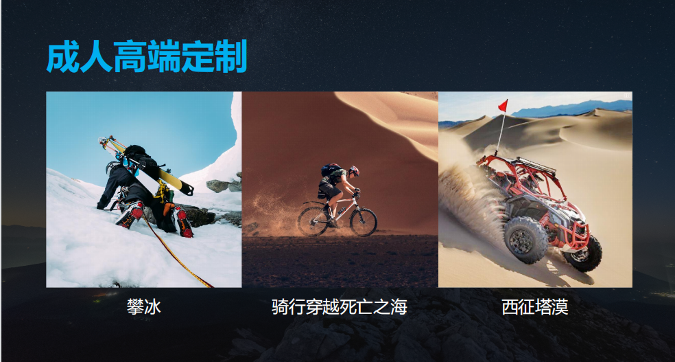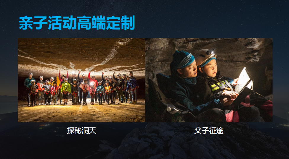 探秘洞天——全程故事沉浸解密式,和孩子必须拥有的亲子沉浸之旅,体验深度情感互动。父子征途——用36小时,让父亲和孩子真正感受到双方的爱。