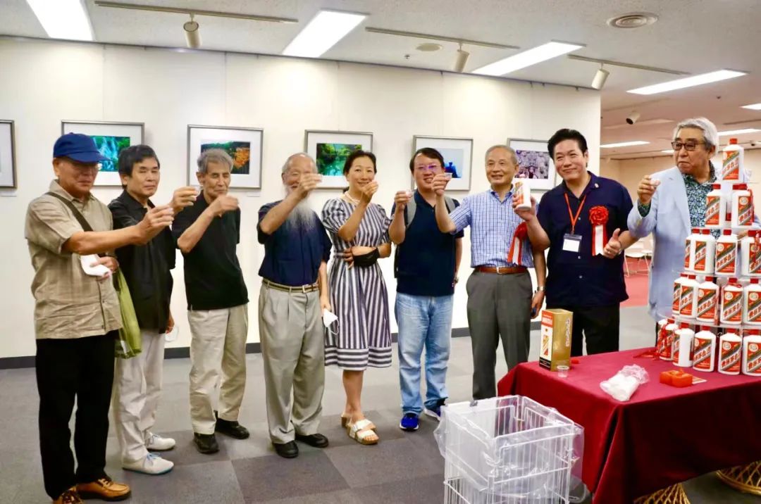 演讲结束后,茅台酒日本总代理日本中国白酒協会理事郭斌先生提供了茅台酒试饮,大家共同举杯,共同预祝“多彩贵州—贵州民族服饰和摄影展”的成功举办。参与活动的不少中国、日本观众表示,第一次喝到如此香醇的中国名酒、烈酒。冯学敏为现场观众讲述了1915年巴拿马博览会上茅台酒获奖并成为世界三大蒸溜酒之一的故事,茅台酒不仅是贵州的一张名片,也是介绍中国的一张名片。贵州历来是酿酒大省强省,主要以酱香型酒和浓香型酒为代表。其中茅台酒更是享誉世界,其酒绵醇浓香、风味独特。茅台酒的酿制技艺更是获得国家级非物质文化遗产称号。