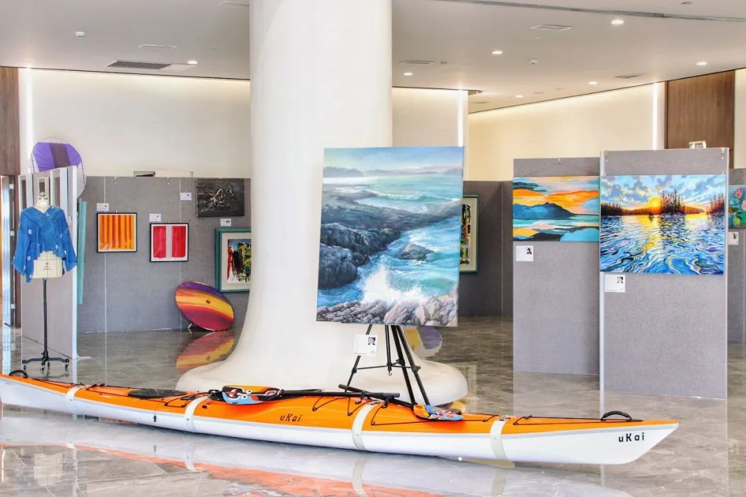 仿真豹、石头画、皮划艇、潮服、儿童画......展会现场展出的作品种类十分丰富。山地艺术空间展策展人江先生介绍,展会分为“小朋友与山地之美”“山地之美,从一块石头开始发现”“印在生活上的传承”三大板块。江先生表示,山地艺术空间展希望能够将山地元素整合并展出,让观众发现山地之美,从而走进山地,爱上山地。