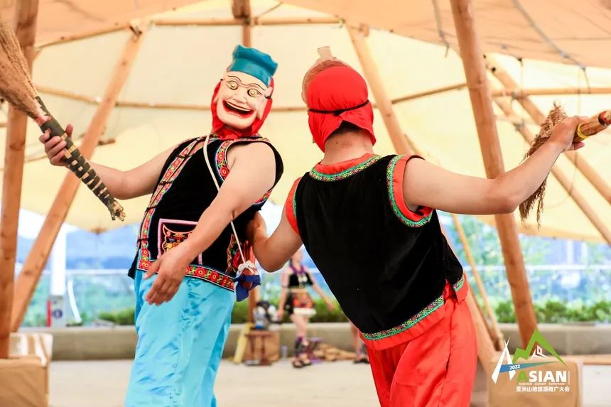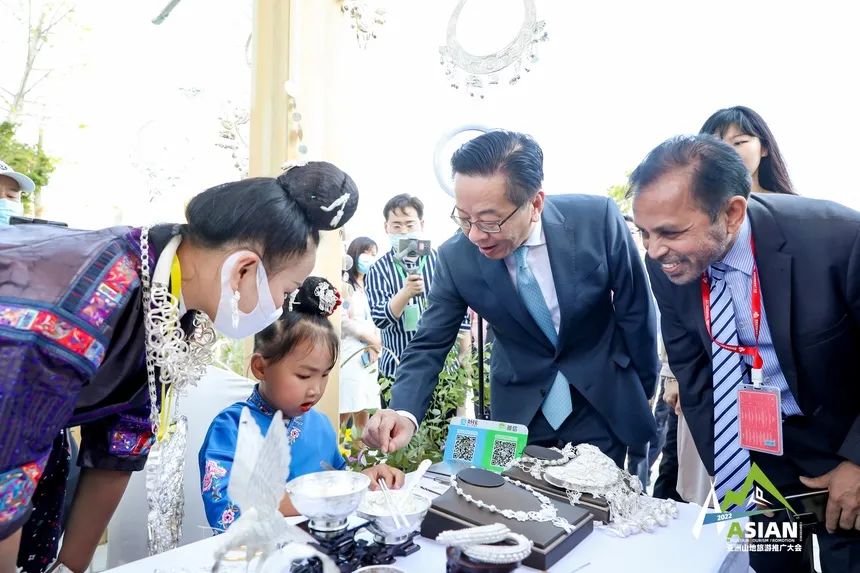 贵州山清水秀,17个世居少数民族在这里和谐共生,民族村寨星罗棋布,在广阔的贵州山地空间里,众多璀璨的非物质文化遗产绽放出了迷人光彩。在2022亚洲山地旅游推广大会的配套展区中,非遗传承体验区无疑是最受瞩目的区域。