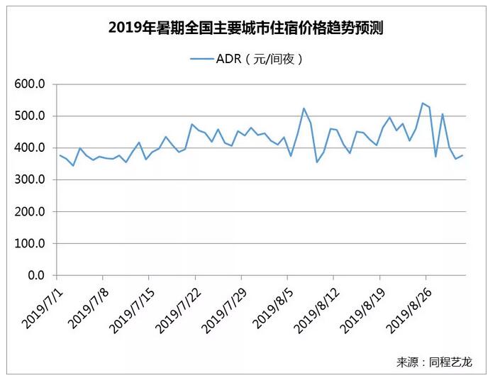 《报告》来自同程艺龙的住宿大数据显示,今年暑期国内大部分热门旅游城市的酒店房价比去年同期均有不同程度的上涨,最高上涨六成以上。整个暑期全国酒店房价随着客流量变化而波动,以7月上旬的平均房价最低,以8月中下旬的平均房价最高,最高可达540.6元/间夜。