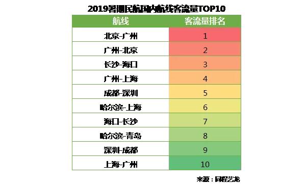 旅客流向方面,北京、广州、长沙、上海、深圳、成都、哈尔滨、青岛、海口等城市机场暑期的客流量较大,客流结构主要以探亲流、旅游为主。