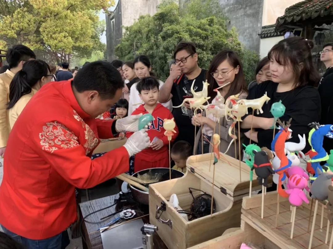 除了琳琅满目的民俗演出,香市期间,口感地道的各色乌镇传统小吃也不容错过。清明粿、五香茶叶蛋、糖年糕......记忆里的“老”美食,带你复苏最鲜活的舌尖记忆。还有吹糖人、捏面人,好吃又好玩。