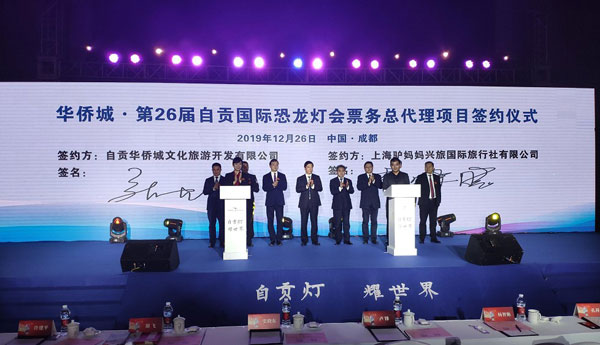 12月26日,华侨城•第26届自贡国际恐龙灯会新闻发布会暨推介会在成都首座万豪酒店举行。会上宣布,驴妈妈旅游将成为华侨城•第26届自贡国际恐龙灯会线上线下独家票务合作伙伴。驴妈妈集团副总裁兼驴妈妈旅游网大度假事业群总经理张帆出席会议并参加了签约仪式。