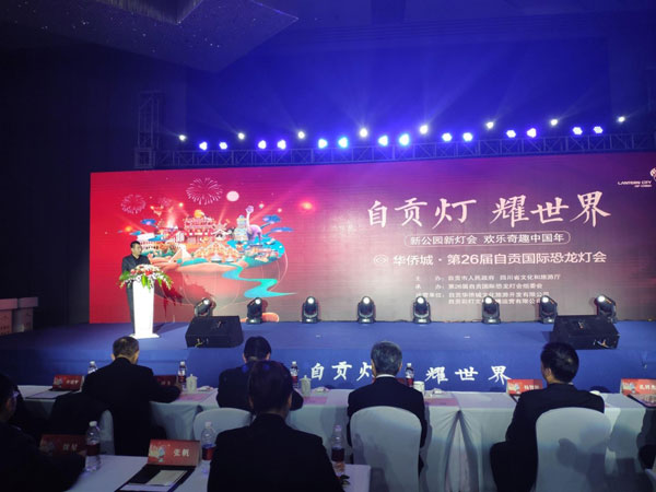 发布会上,华侨城•第26届自贡国际恐龙灯会开灯时间及活动内容正式公布。本届灯会以“自贡灯 · 耀世界”为主题和愿景,设置九大主题区域,利用自然的山地起伏,通过水面、陆地、山中、山体四维一体背景,借助光影科技打造出集合了光影、水景、巡游、烟花为一体的大型水舞台主题光影秀。
