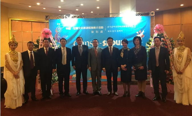 4月16日,中国甘肃文化旅游招商推介活动在韩国首尔希尔顿酒店精彩开幕,韩中文化友好协会会长曲欢应邀出席了活动。出席活动的韩中嘉宾有:甘肃省人民政府副秘书长石培文、中国驻韩国大使馆公使衔参赞王鲁新、中国驻韩使馆参赞兼首尔中国文化中心主任王彦军、中国国家旅游局驻首尔办事处主任李保荣、韩国首尔市观光体育局局长朱容台和甘肃省文化旅游厅、商务厅、外事办和经济合作局负责人等。