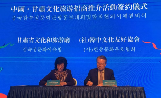推介会上,韩中文化友好协会与甘肃省文旅厅签署了旅游战略合作协议。