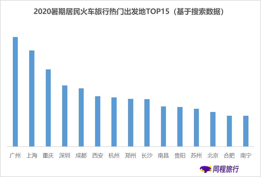 与民航相比,铁路出行的热门目的地和出发地相对分散,除了一线城市和中心城市外,一些三四线城市的客流量也较大。《报告》基于同程旅行平台火车票搜索数据的预测显示,上海、重庆、成都、北京、深圳、杭州、长沙、西安、郑州、贵阳、南京、苏州等将是暑期比较热门的铁路出行目的地。热门出发地主要有广州、上海、重庆、深圳、成都、西安、杭州、郑州、长沙、南昌、贵阳等。