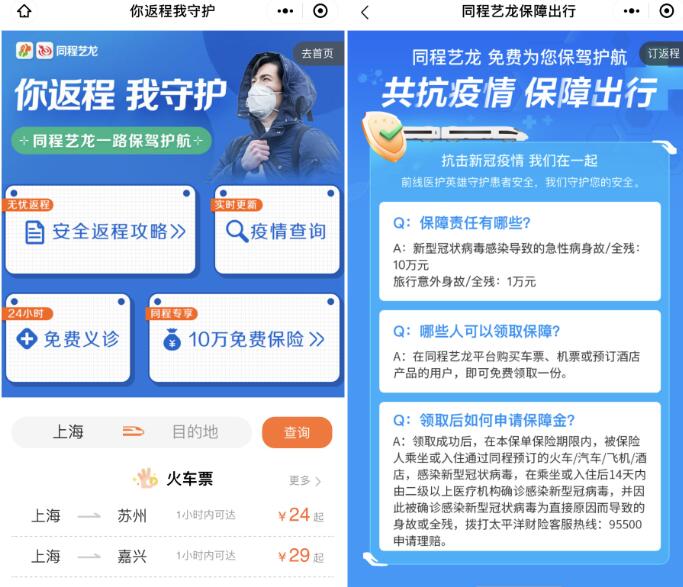 当前疫情形势依旧复杂严峻,目前公众已尽量减少了外出活动,但仍有部分群体有外出需要,特别是随着春节假期的结束,部分用户可能面临返工出行需要。“虽然各地已一再呼吁减少外出,但仍有部分人员有不可避免的外出需求,作为国内领先的在线旅行一站式服务平台,我们有责任也有义务保障外出人员的生命安全,旨在疫情面前给予外出人员一份切实保障。” 同程艺龙市场中心有关负责人表示。