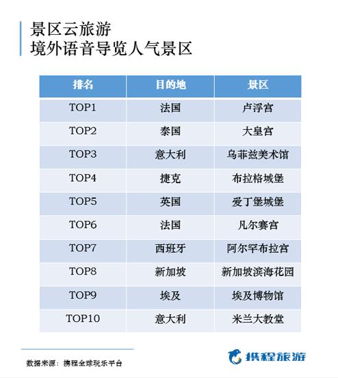 根据全球玩乐平台数据,卢浮宫、大皇宫、乌菲兹美术馆、布拉格城堡、爱丁堡城堡、凡尔赛宫、阿尔罕布拉宫、新加坡滨海花园、埃及博物馆和米兰大教堂是人气最高的十大境外景区。