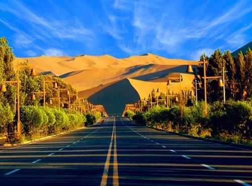 鸣沙山月牙泉风景名胜区,位于敦煌城南五公里,沙泉共处,妙造天成,古往今来以“沙漠奇观”著称于世。