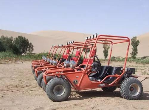 驾乘特制沙地情侣卡丁车,驰骋在浩瀚无垠的大沙漠,尽情感受大漠风光,忘却烦恼,享受快乐,让爱情、友情、亲情在这一刻得到升华,得到满足。