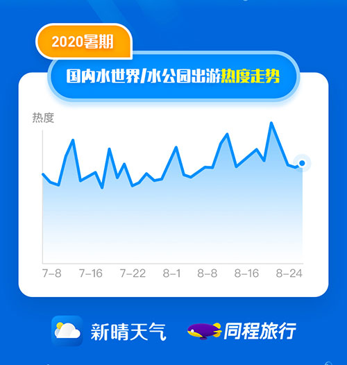 同程旅行与新晴天气联合发布了《2020暑期玩水报告》(下称《报告》),基于同程旅行的旅行大数据和新晴天气的天气数据分析了今年暑期国内水世界、水公园的出游情况。