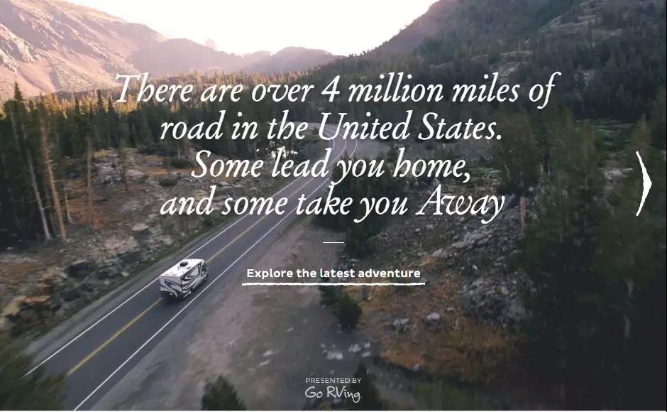 1994年起,RVIA带领着制造商、经销商、露营地,开展了GoRVing(RV,RecreationalVehicle,房车的简称)。GoRVing,既是项目的名称,更是项目的口号,呼吁人们都行动起来,了解RV,认识RV,开始自己的RV之旅,分享自己的RV之行。每一个热爱房车旅行的人都成为网站构建的一份子,分享自己的房车旅行故事。