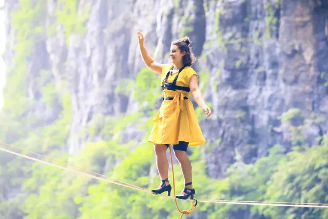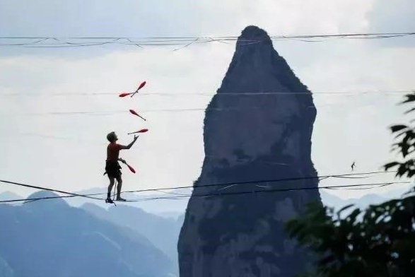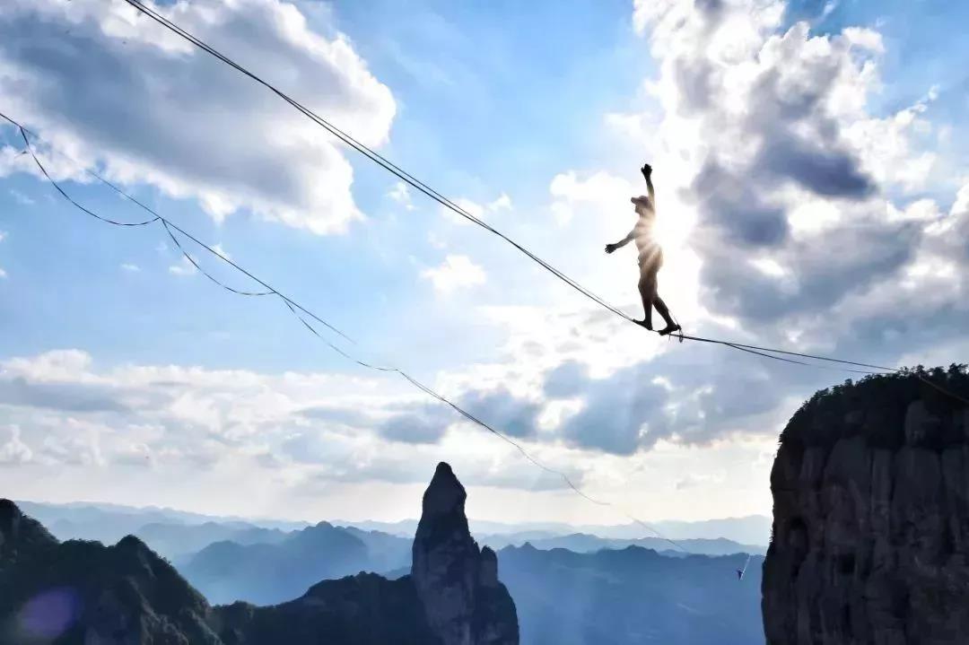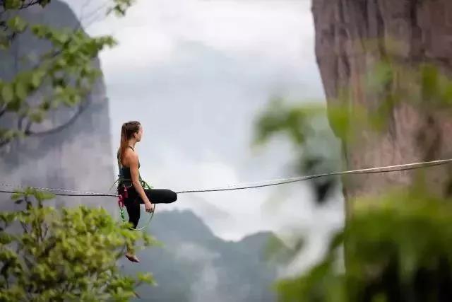 这是2018年5月27日,发生在张家界天门山国家森林公园的一幕,来自法国、加拿大、美国的三位世界顶尖扁带运动员穿着高跟鞋挑战海拔1300多米的高空走扁带。目前,全球专业扁带选手不足百人。由女运动员穿上高跟鞋进行挑战,更是将难度升级到不可思议的程度,目前仅有四人进行过尝试。这项危险而美丽的运动,为我们带来了极限运动的魅力。