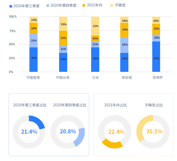 受疫情影响,亚太地区主要市场的消费者疫情后旅游计划产生变更,不同市场的消费者信心由于疫情所处阶段不同也有所差异,30%以上的来自中国香港、日本、菲律宾等亚太主要市场的消费者,均对于今年年内出行持乐观态度。不过也有部分消费者对此持观望态度,特别是来自日本市场的消费者。