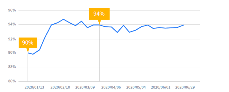 随着出行窗口的缩短,疫情期间亚太地区用户更易接受行前预付的消费形式,预付类产品在订单中的占比自年初以来上升了4%。这一消费行为的转变,说明消费者对旅游类产品的灵活性更加看重。
