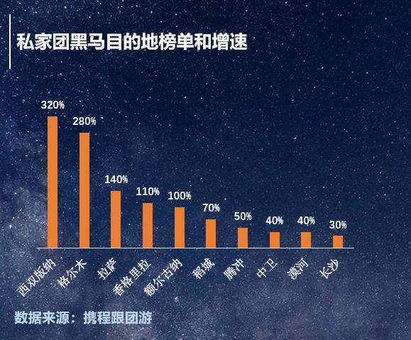 去哪些目的地的私家团订单最多?“暑期私家团十大目的地省市”是:云南、四川、甘肃、内蒙、海南、青海、湖南、广西、西藏、贵州,旅游资源丰富的目的地省份私家团订单相对更多。特别是西北青滇藏等地表现亮眼。
