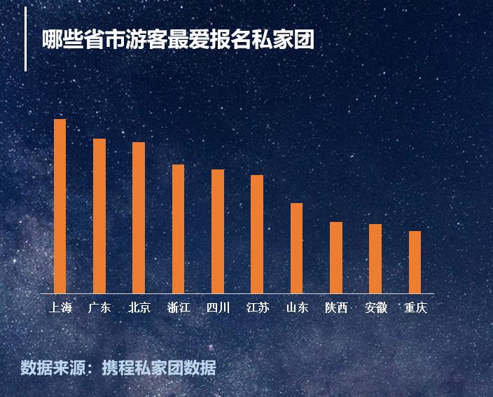 相对来说,经济条件好、旅游市场成熟的省市,消费者更愿意选择私家团。“暑期私家团十大出发省市”是:上海、广东、北京、浙江、四川、江苏、山东、陕西、安徽、重庆。