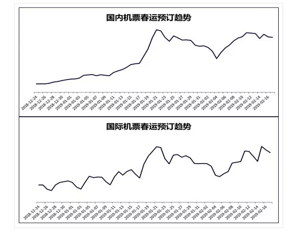 元旦过后,火车票春运“抢票大战”迎来关键时刻,热门线路一票难求情形再现,没有抢到火车票的消费者转而开始关注春运机票。那么,春运机票预订情况如何呢?同程艺龙日前发布了《2019春运机票预订大数据报告》(下称《报告》),基于同程艺龙机票大数据分析了今年春运期间的机票预订情况。《报告》预测,铁路春运首日民航国内航班将迎来购票高峰。另外,随着燃油附加费的取消,航程800公里以上航线机票价格直降30元,这将在一定程度上刺激更多消费者选择民航。