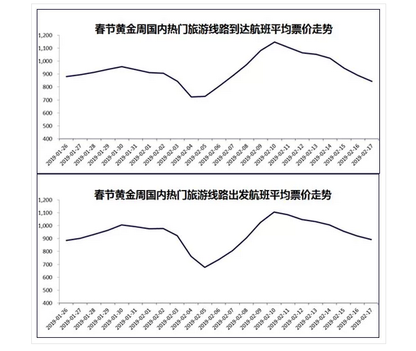 春节黄金周国内热门旅游线路机票平均价格最高在1100元左右