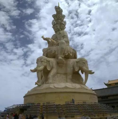 在藏传佛教中,峨眉山被称为“挺拔屹立的大象山”,是一座吉祥山,在四大佛教名山中,唯有金顶华藏寺普贤菩萨的坐像是面向西方。因此,在诸山中,峨眉山特别受到西藏僧众的青睐。佛教徒认为普贤菩萨将会以他无边的法力来庇佑西藏人民。
