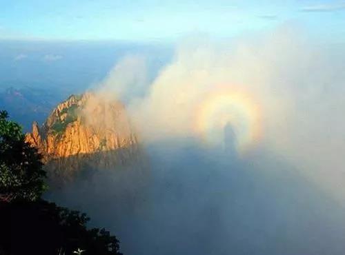 看峨眉山佛光,峨眉山的佛光被誉为世界奇观,已经存在了1900多年的历史。当人站在金顶背向太阳而立,而身前下方又弥漫着云雾时,有时会在前下方天幕上,看到一个外红内紫的彩色光环,中间显现出观者的身影,十分神奇。