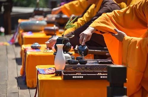 峨眉山佛茶在发展中,从对茶的精神理念到具体的茶事活动,皆形成独特的文化归属。在佛门看来,峨眉山茶是佛之所赐,是随普贤菩萨驻锡峨眉山并以之作为弘法道场的法意,是降福于众佛弟子之馈赠。它具有却百疾、驱秽气、延年益寿疗效的同时,还具备了清心明目、智慧善根、禅悟一切人生的精神意向与菩提心向。“玉手纤纤,禅心净净,虔诚颂诵,采供佛前”。