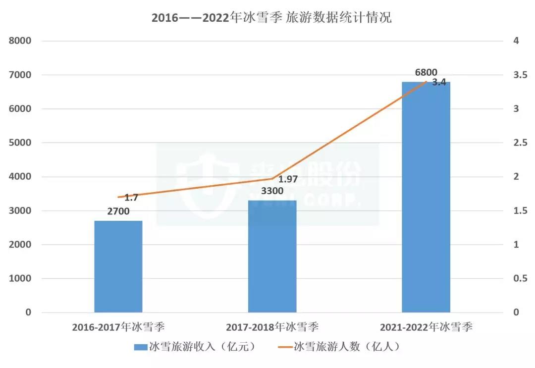 报告预计到2021-2022冰雪季,我国冰雪旅游人数将达到3.4亿人次,冰雪旅游收入将达到6800亿元。冰雪旅游进入爆发式增长的黄金时代。