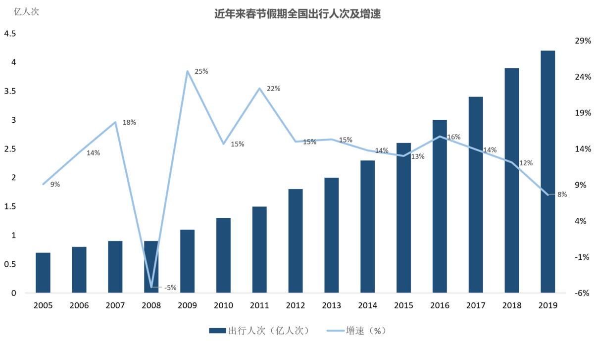 在国内旅游数据惨淡的同时,出境游仍处于增势,当然出境游目前的基数也比较低。在2019年春节期间,国内游是2005年以来最低的增速,但出境游(内地居民因私出境)仍保持了16%的同比增长,并且综合多家主流旅行社的统计数据来看,出境游的价格整体上升了10%。