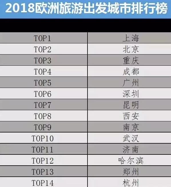 2018年赴欧洲游客的主要客源地有:上海、北京、重庆、成都、广州、深圳、昆明、西安、南京、武汉、济南、哈尔滨、郑州、杭州、长沙。