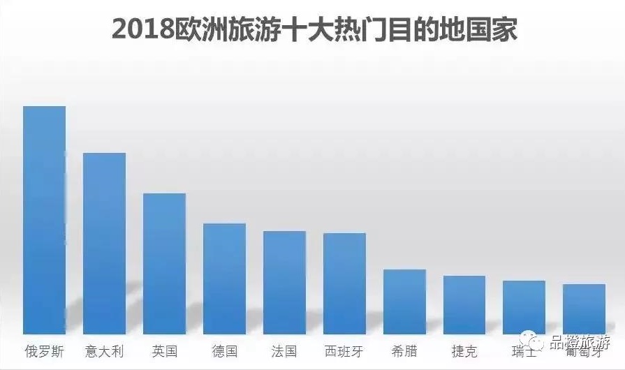 根据携程旅游和华程国旅集团的数据,2018年最热门欧洲目的地国家有:俄罗斯、意大利、英国、德国、法国、西班牙、希腊、捷克、瑞士、葡萄牙。此外通过携程签证平台办理前往土耳其、荷兰等地的签证产品销量也较高。