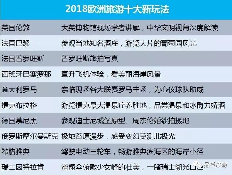 2018年欧洲游涌现出一批时尚新玩法,找一名熟悉当地、讲中文的当地向导带着玩,成为当下流行趋势。旅游者可以通过去伦敦现场聆听大英博物馆学者讲解,去普罗旺斯旅拍写真,去慕尼黑参观迪士尼城堡原型,去俄罗斯的摩尔曼斯克极地苔原散步,感受变幻莫测的北极光。