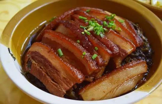 扣肉是湘西土家人待客的一道名菜,一般只有煨事办酒席才会上用作主菜。扣肉的做法其采用五花猪肉,经过煮、炸、蒸等多道工艺制成。虽说是肥肉制成,但吃起来一点也不腻口,味道极其鲜嫩。
