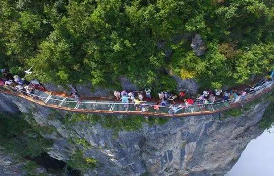 这座桥并非人工打造的,是一座天然形成的桥,也是张家界的精华景点,厚约5米的天然石板横跨在两座山之间,桥高约400米,是张家界最高的石桥,这样的高度、这样的跨度与惊险堪称天下奇见,所以被称为:天下第一桥。