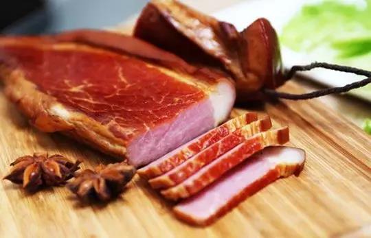 湖南的一道特色菜,以湖南安化腊肉和湘西腊肉最为出名。安化腊肉,体形大,颜色黑,熏得干,肉质细,味道香;湘西腊肉,色彩红亮,烟熏咸香。制作全过程一般分为备料,腌渍,熏制三步。