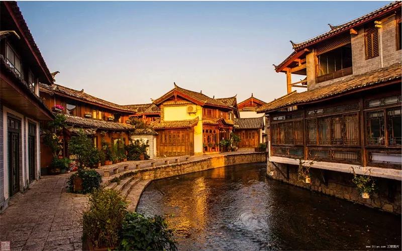 丽江古城,以三山为屏,一川相连;三河穿城,家家流水。古城以水为核心,桥梁密集,建筑极具特色,融合了汉、白、彝、藏各民族精华,并自具纳西族独特风采。