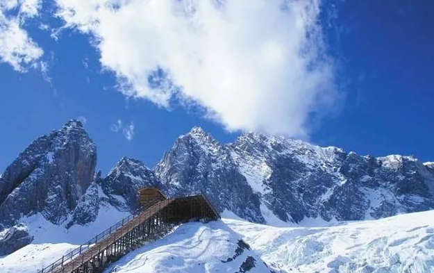 玉龙雪山,十三座雪峰连绵不绝,终年积雪,如盘旋巨龙横卧滇北。这是纳西族及丽江各民族心中神圣的山,是纳西族保护神“三朵”的化身。从山脚河谷到雪山顶峰,可饱览一层层垂直带自然景观——雪域、冰川、高山草甸、原始森林、雪山水景。