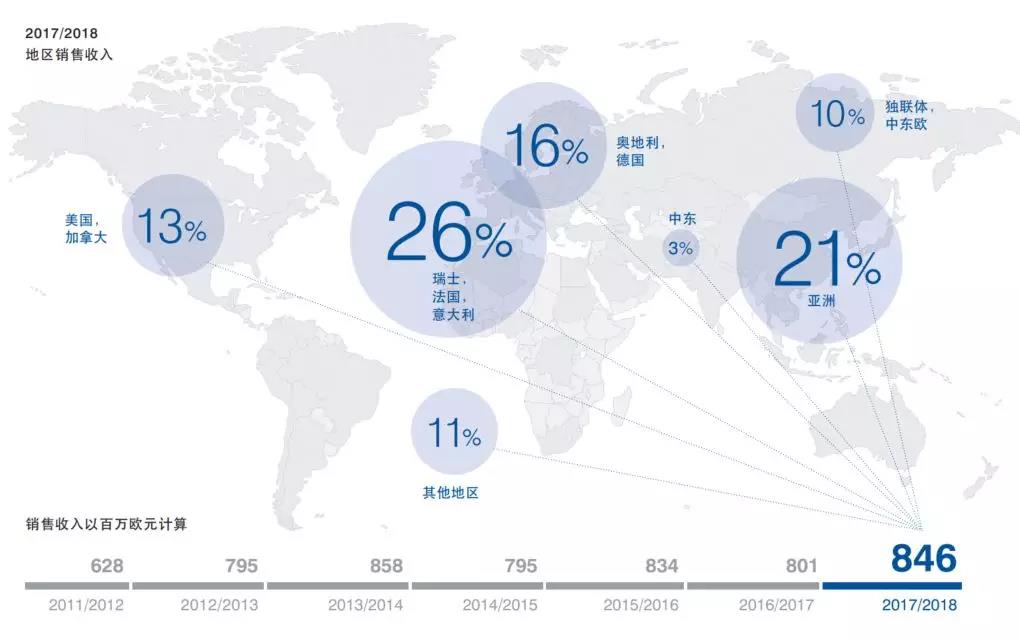 2017/2018年度,冬季旅游再次成为重要的销售驱动因素,集团三分之二的项目集中在该领域。阿尔卑斯山区国家,如奥地利、德国、瑞士、法国和意大利占多贝玛亚/格拉文达总销售收入的40%。2018年的里程碑式成就包括直达德国最高峰-楚格峰的往复式架空索道以及世界上最陡峭地面缆车Stoos的完工。凭借Stoos地面缆车的创新设计,格拉文达荣获2018年IHZ创新奖。