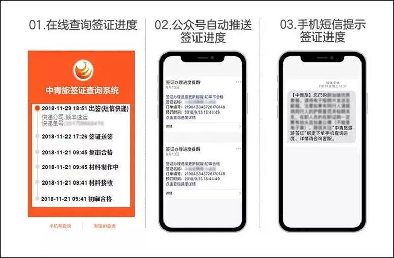 同时,中青旅签证客户还可以通过收取手机短信、关注“中青旅签证”微信公众号等多种渠道,对办理进度进行实时查询跟进。