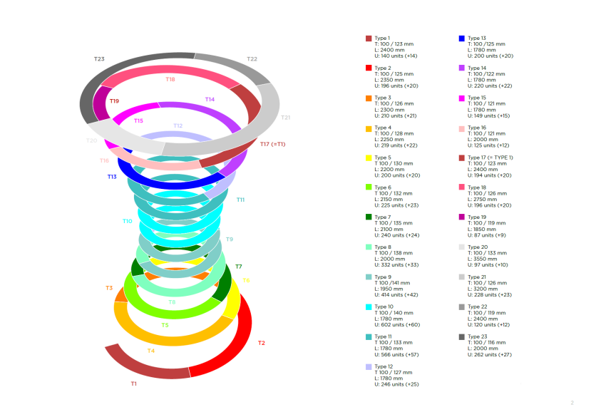 与以往见到的观景塔不同,探险营地的观景塔呈沙漏型,腰部细长,底部与顶部面积更大,这样的设计不仅使塔架更加稳定,还增加了塔架顶部的观景台空间,增强了游览体验。塔中步道采用无障碍木制坡道,沿螺旋状上升,每个上升坡度都经过严格计算,保证了游览的舒适性。
