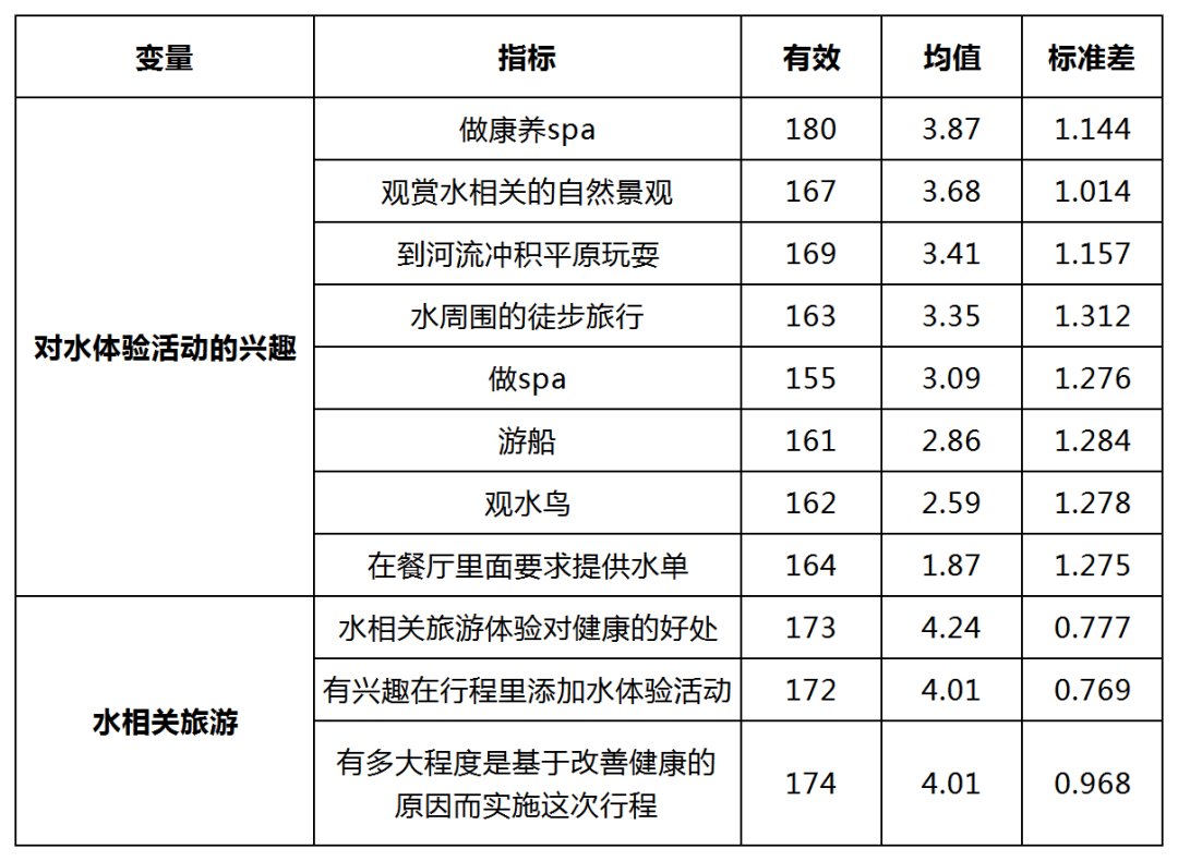 经过研究人员的最后统计,结果显示,健康的水体验类活动对旅游者的体验满意度有积极影响,而体验满意度对旅游者的生活质量、体验忠诚度及目的地忠诚度均有积极影响。